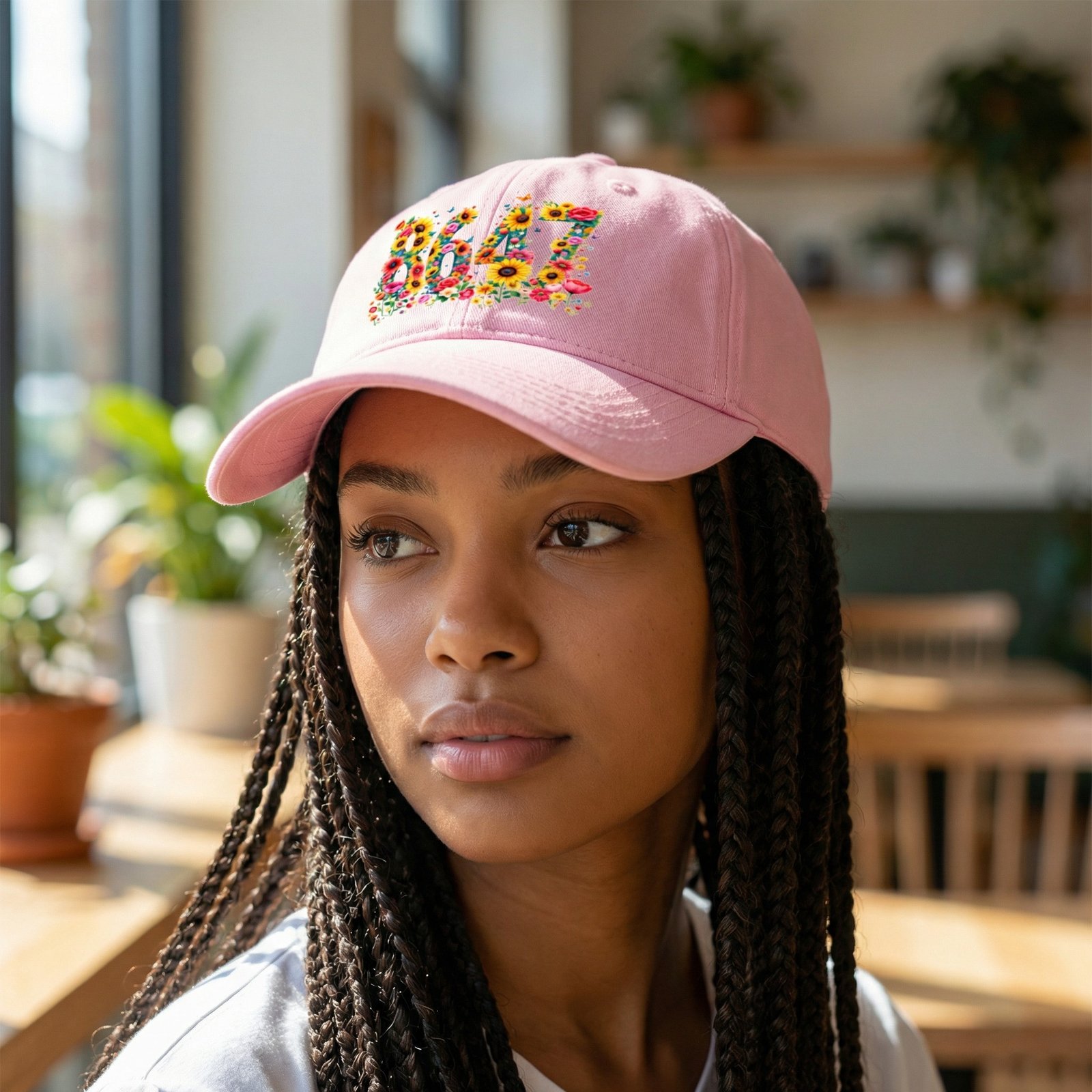 This embroidered dad hat delivers a powerful message with a gentle, thoughtful touch. The front features “BLM” spelled out in a floral-style design, combining strength, hope, and humanity in one clean, eye-catching graphic.