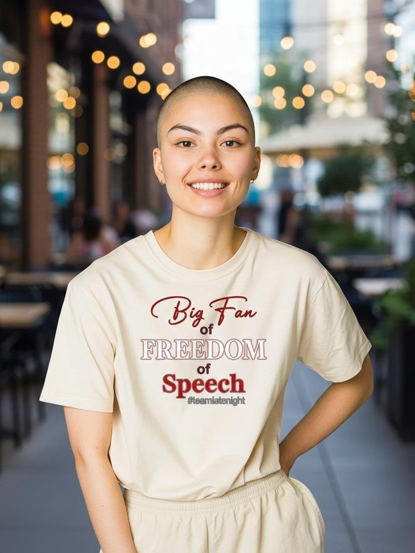 This graphic t-shirt celebrates one of the most fundamental values there is—freedom of speech. Featuring a balanced mix of script and bold typography, the design feels intentional and easy to read without being loud or chaotic. The message is direct, confident, and rooted in principle rather than shock.