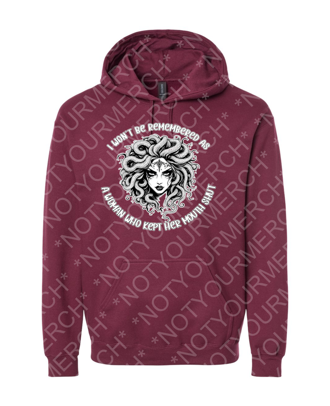 This hoodie is for those who refuse to stay quiet. Featuring a striking Medusa-inspired illustration paired with the phrase “I won’t be remembered as a woman who kept her mouth shut,” this design honors strength, defiance, and the power of speaking truth—no matter the cost.