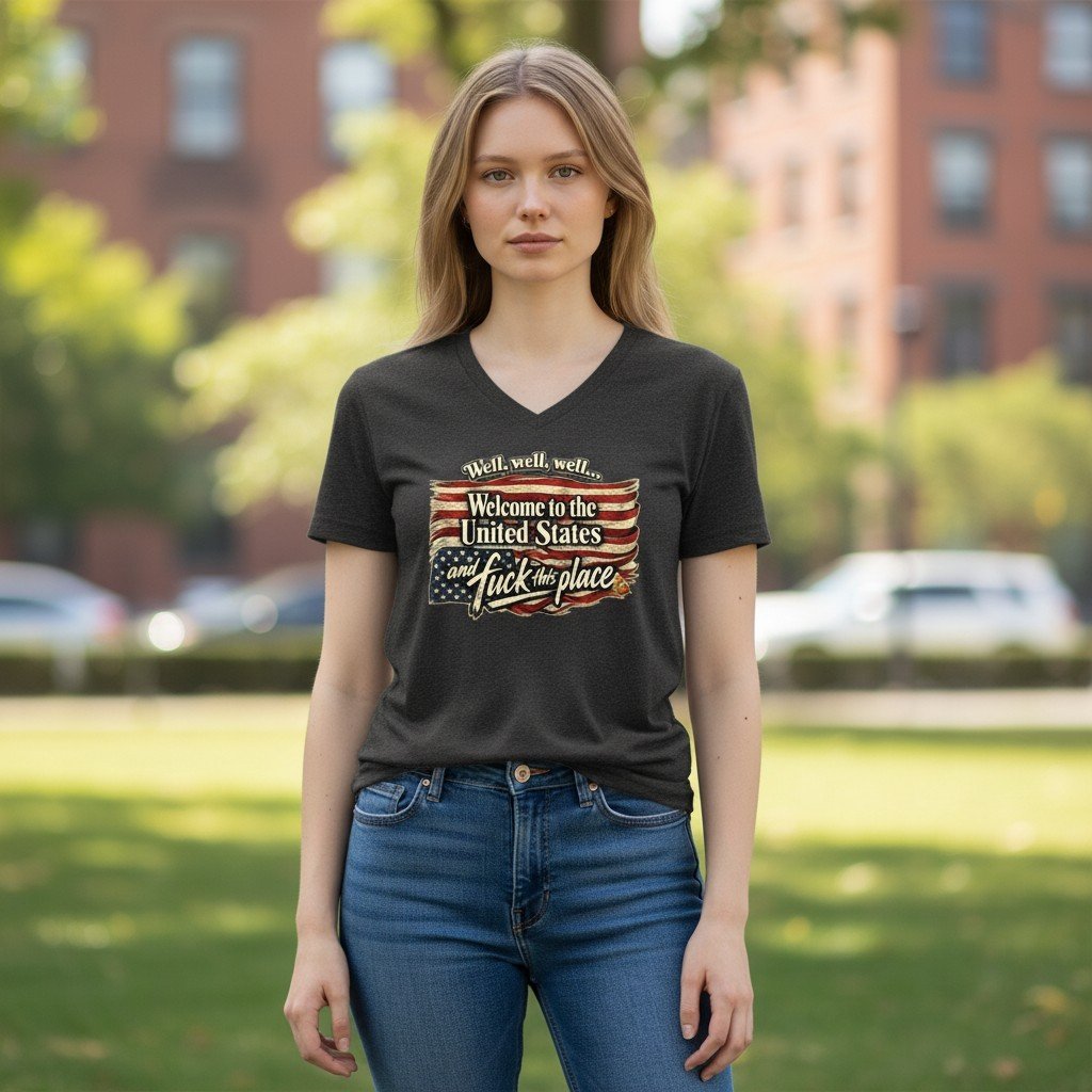 Well, Well, Well Welcome to the United States and Fuck this Place – Bold Statement Graphic T-Shirt